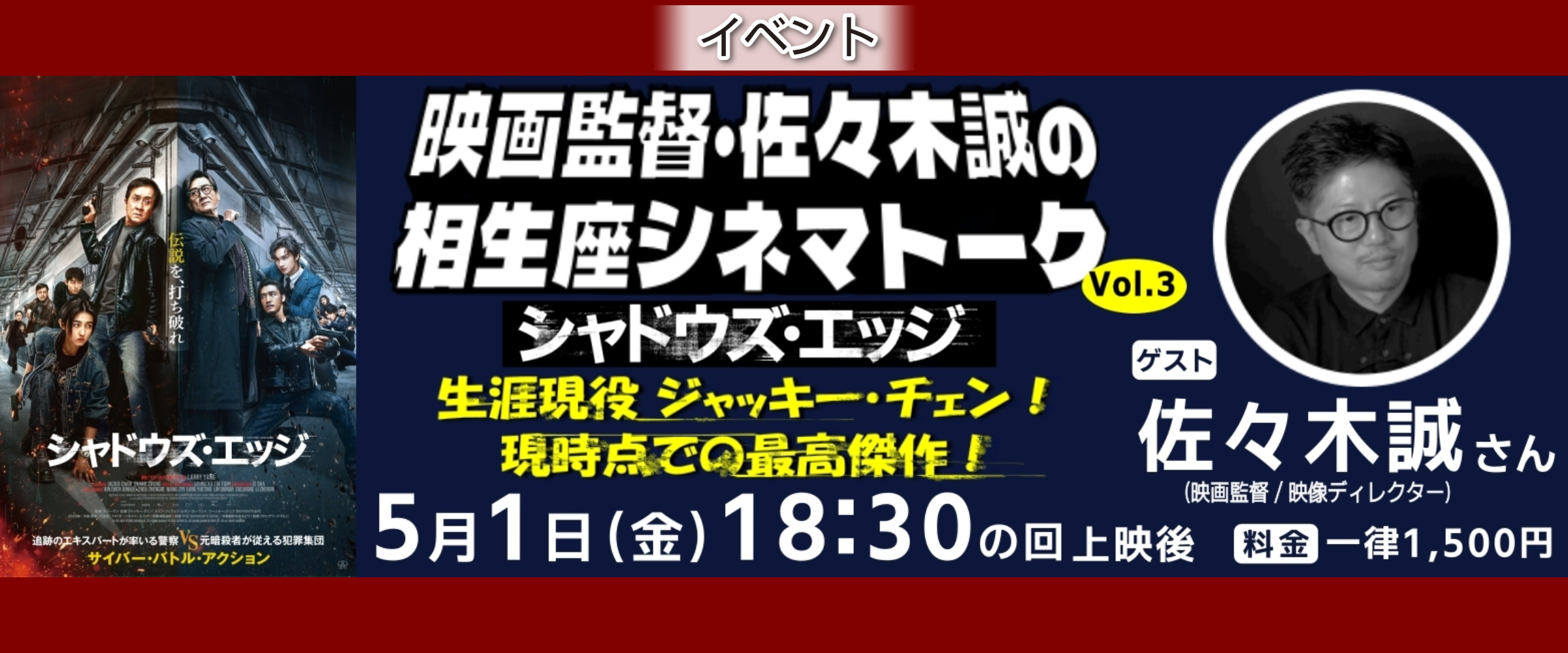 【イベント】5/1(土)『シャドウズ・エッジ』映画監督・佐々木誠の相生座シネマトークVol.3