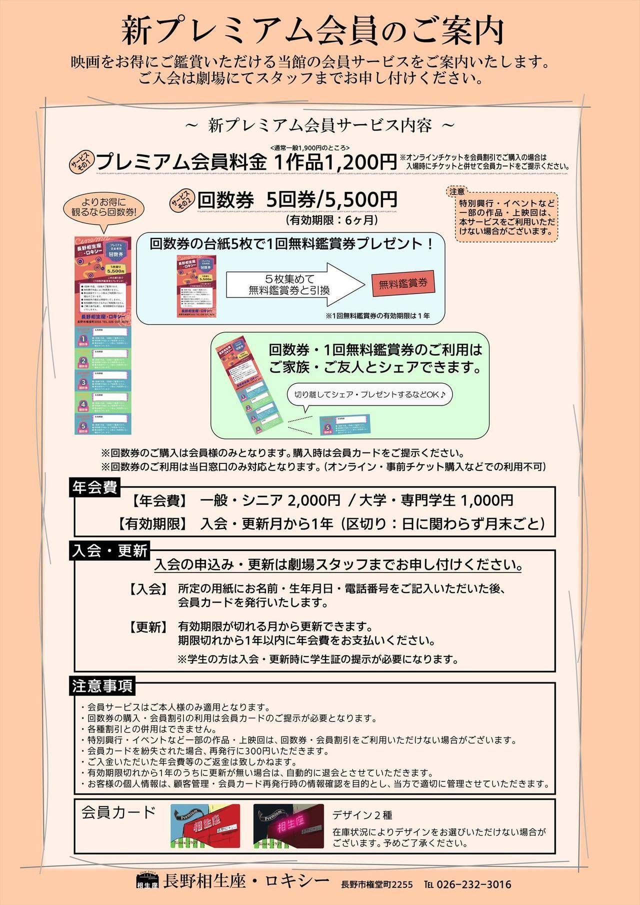 プレミアム会員 回数券 | 鑑賞5回分 5,500円 |