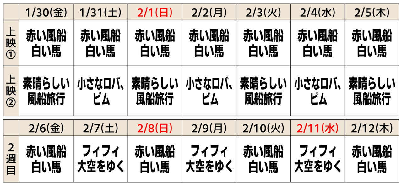 【上映作品】※『赤い風船』『白い馬』は2本立て上映