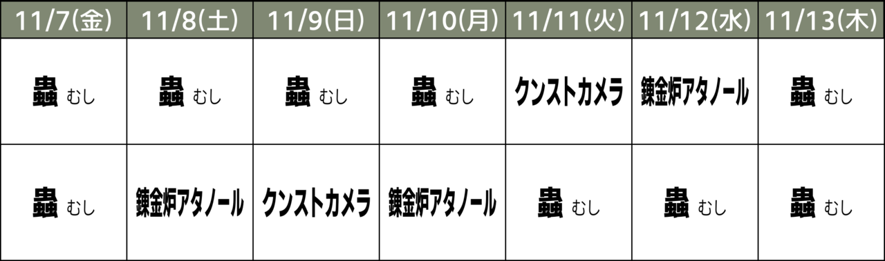 『蟲』『錬金炉アタノール』『クンストカメラ』