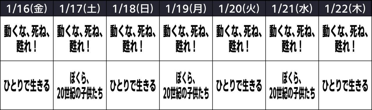 【上映】1/16(金)~1/22(木) *日替わり上映