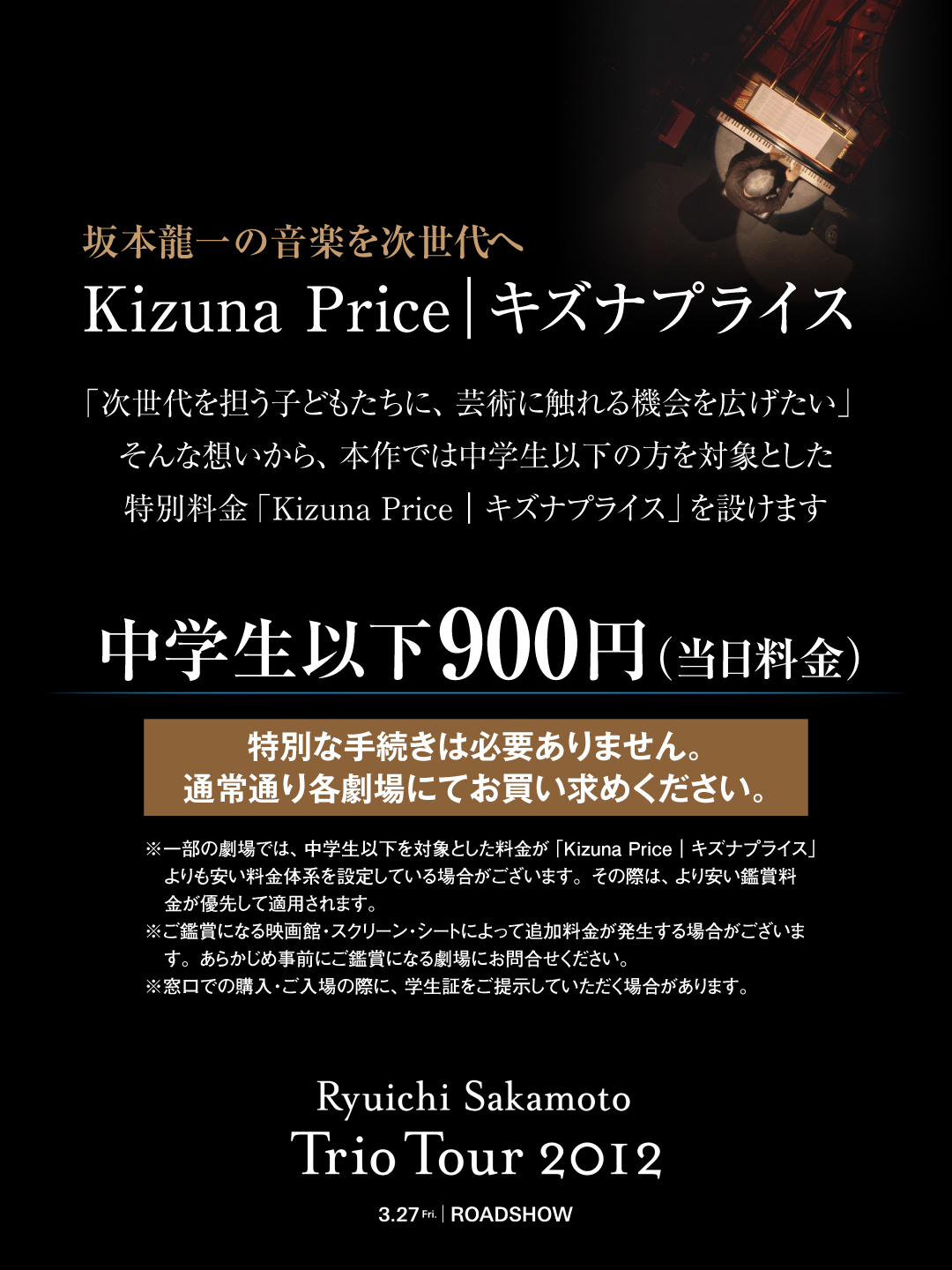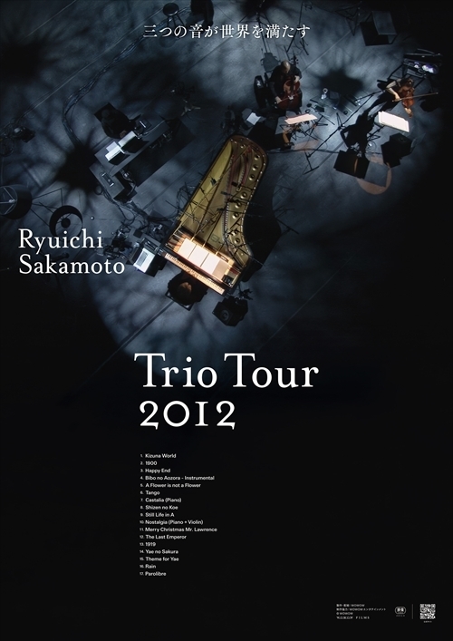 世界的音楽家・坂本龍一。71歳で惜しまれつつこの世を去った彼は、ジャンルや形式に縛られず、幅広い表現を追求してきた。1996年、坂本はピアノ、チェロ、ヴァイオリンというシンプルな構成でありながら、最良の音楽表現を可能にする“トリオ編成”でアルバム『1996』を発表。この世界ツアーは各国で激賞され、再演を望む声が絶えなかった。そして2012年、日本で16年ぶりに、このトリオ編成が復活する。坂本はアルバム『THREE』を制作し、日本と韓国を巡る全12公演のツアー『Trio Tour 2012』を開催。出演するのは、チェロのジャケス・モレレンバウム、ヴァイオリンのジュディ・カン。いずれも『THREE』と同じメンバーによる、見逃せないトリオである。このツアーでは、YMOの名曲をはじめ、「Merry Christmas Mr. Lawrence」や「The Last Emperor」といった代表作が惜しみなく披露される。そこに加えて、東日本大震災で大きな被害を受けた東北でも公演が行われた背景から、東北へのチャリティ曲「Kizuna World」や、福島を舞台にした大河ドラマのメインテーマ曲「Yae no Sakura」など、日本に寄り添う楽曲も織り込まれている。