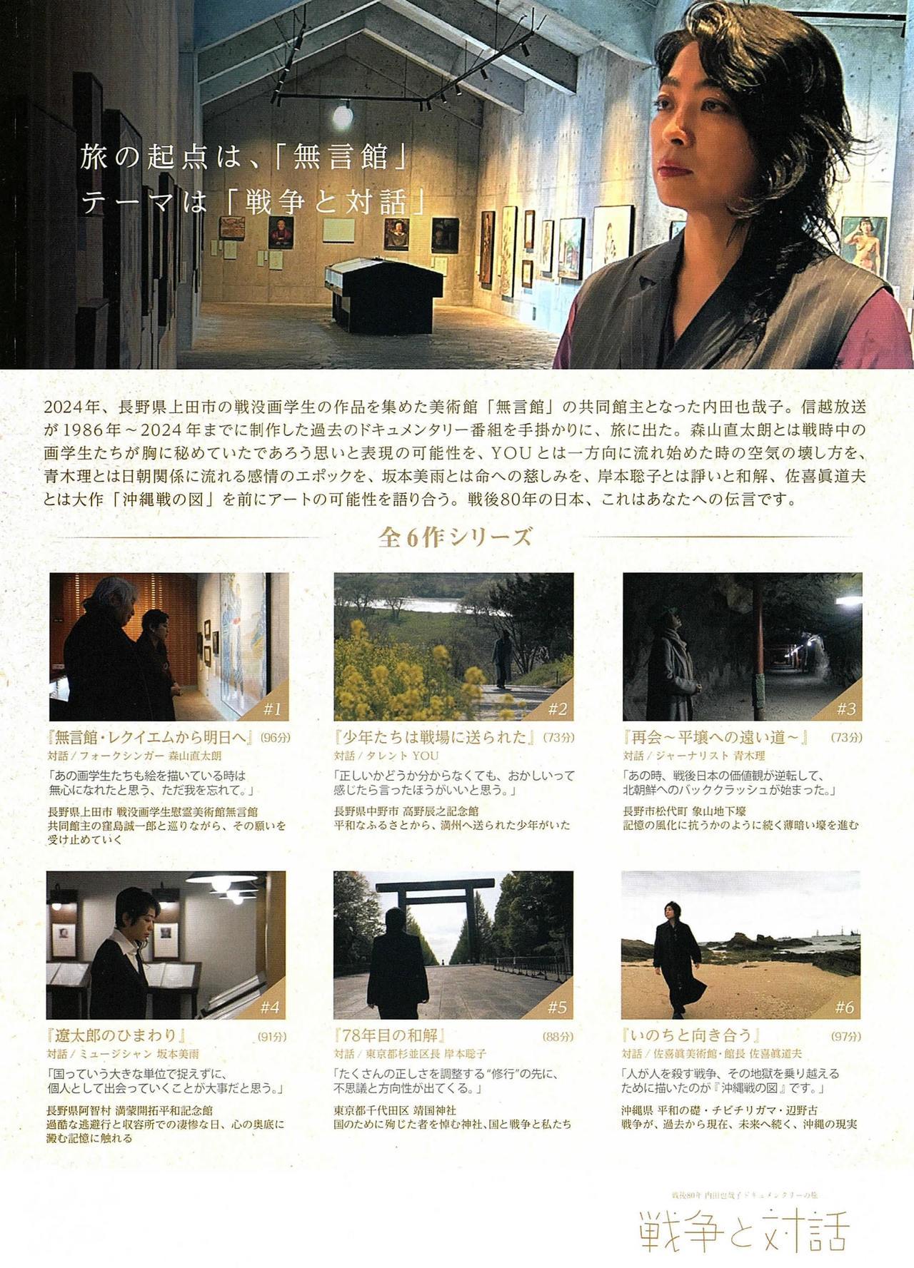 対話のお相手にタレントのYOUを迎え、ドキュメンタリーのこと、子どもや親の目線で見た戦争、ふるさとと「戦争と平和」について語り合う。
