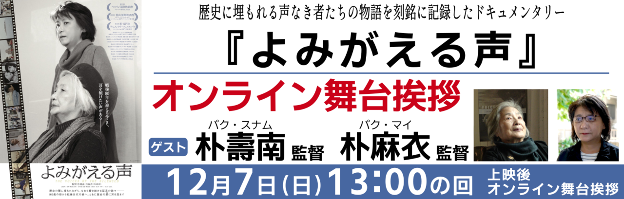 2025年12月7日(日)13:00の回 上映後、オンライン舞台挨拶(終了予定15:55)